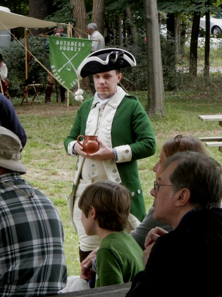 Visitors to the 4th annual Revolutionary War Weekend were treated to a multitude of colonial era activities including blacksmithing and musket ball fabricating, broom making, candle making and shoe making demonstrations. Shuttle bus tours took visitors to the Dutch Reformed Church and Trinity Episcopal Church in Fishkill as both played significant roles during the Revolutionary War. Tours of the Van Wyck Homestead, Herb garden and Regimental encampment were provided all day, both days and all activities were free to the public. The weekend began with a mustering of the troops (2nd and 5th NY regiments) followed by a patriotic flag-raising ceremony. Four interpreventive walking tours to the burial ground were provided to educate the public about the FSD and the fight to save it and the soldiers who lie in a field along Route 9 (Old Post Road). Several educational presentations were made including "Loyalists in America," "History of the US Flags" and "The Story of Sybil Ludington's ride. |