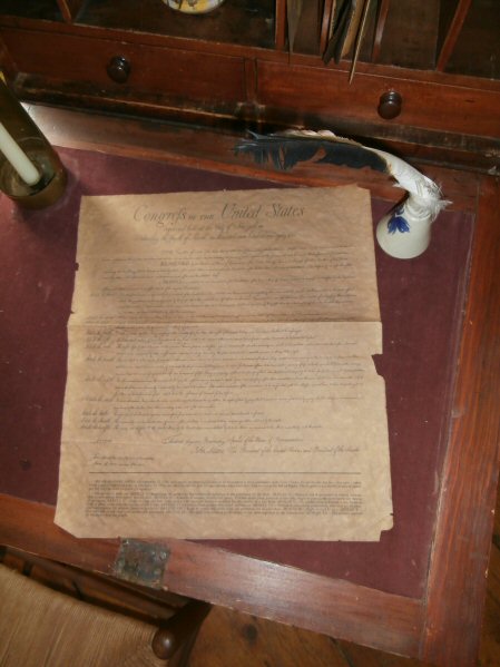 (Above L-R) FOFSD Treasurer Paula Sarvis has been a vital part of our organization from its humble beginnings. 85 flags were placed on the unmarked graves of soldiers in the burial ground. Photo of the base of the mountain described in "History of Dutchess County" by James H. Smith 1882. Musician Linda Russel entertained visitors with music of the colonial era. (Below L-R) Steve Lynch is President of our co-sponsors, the Fishkill Historical Society. Colonial era writing table inside the Van Wyck Homestead. The Dutch Reformed Church in Fishkill was used as a makeshift hospital during the war and Dutchess County Historian, William Tatum III takes part in the "Loyalists in America" presentation. |